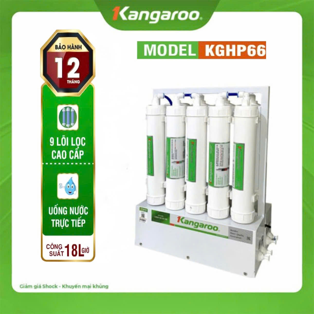 Máy lọc nước RO Kangaroo KGHP66 có 9 cấp lọc, diệt khuẩn đến 99,99% mang đến nguồn nước sạch đảm bảo cho sức khỏe: