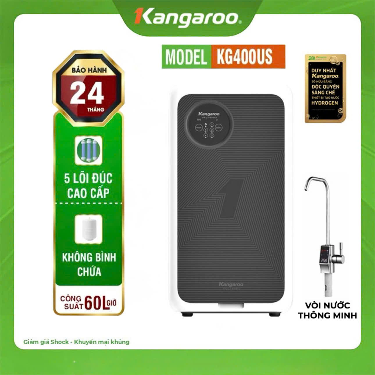 Kangaroo Hydrogen KG400US là thế hệ máy lọc nước mới nhất với những tính năng thông minh vượt trội. Thiết kế không bình chứa cùng công nghệ lọc trực tiếp tạo nước tươi giàu hydrogen có lợi cho sức khỏe. Công suất lọc lớn 60L/h, cảnh báo thay lõi, hiển thị chất lượng nước sạch TDS ngay tại vòi,… KG400US sẽ là sản phẩm hoàn hảo dành cho gia đình bạn.
